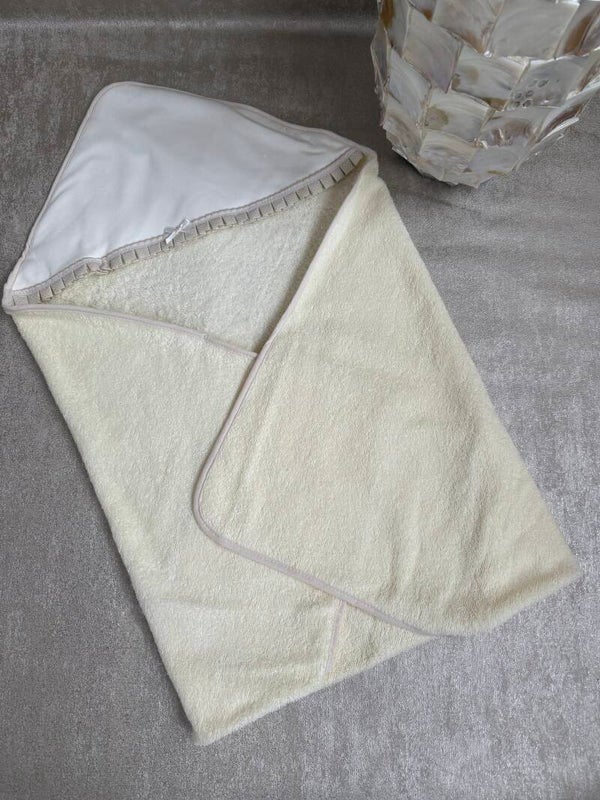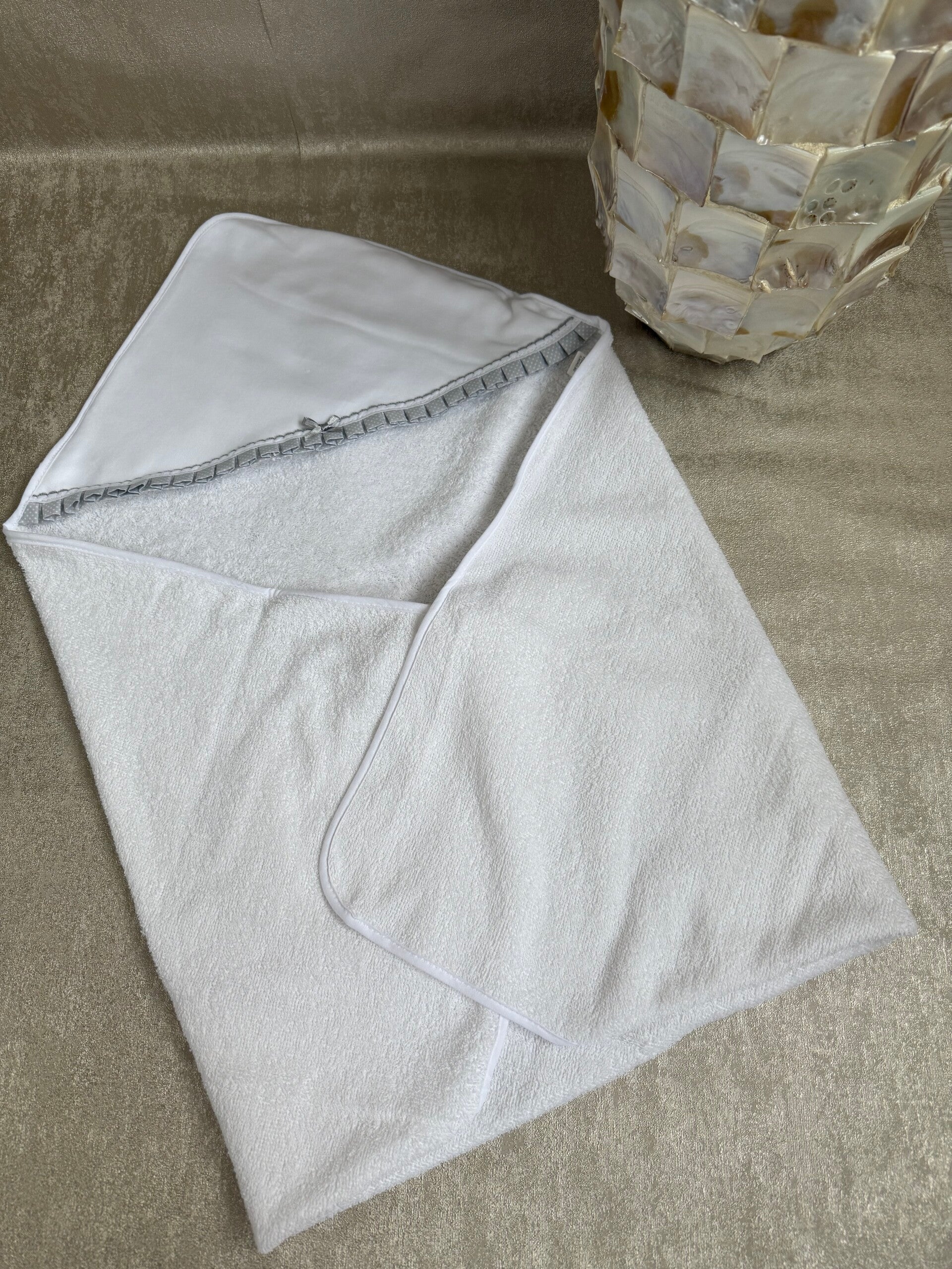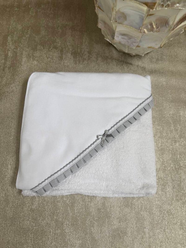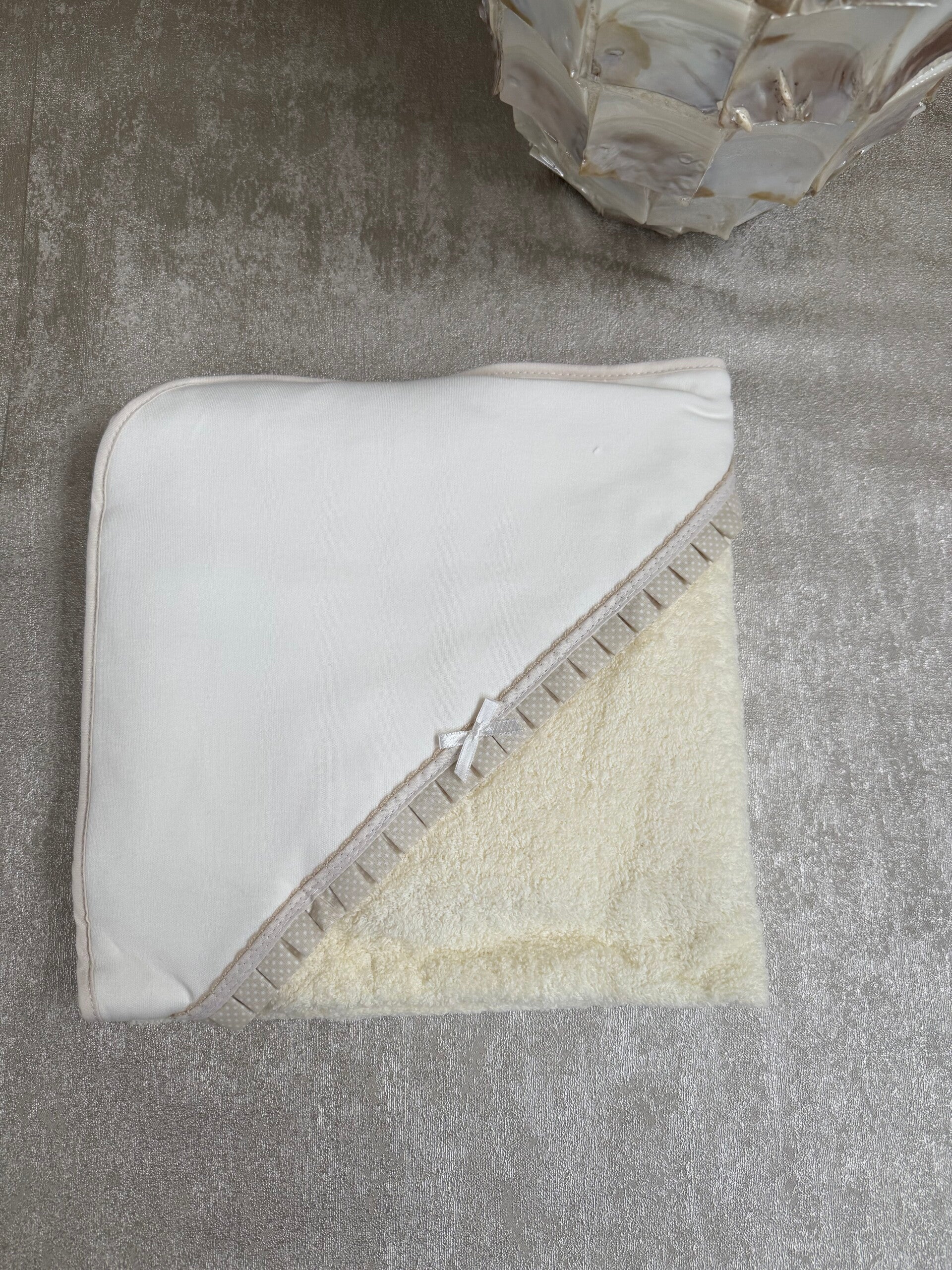 Deze schattige badhanddoek is de tip als het gaat om kraamcadeau! Mooi te combineren met andere badspulletjes en accessoires. Luxe afwerking van een randje met strikje.